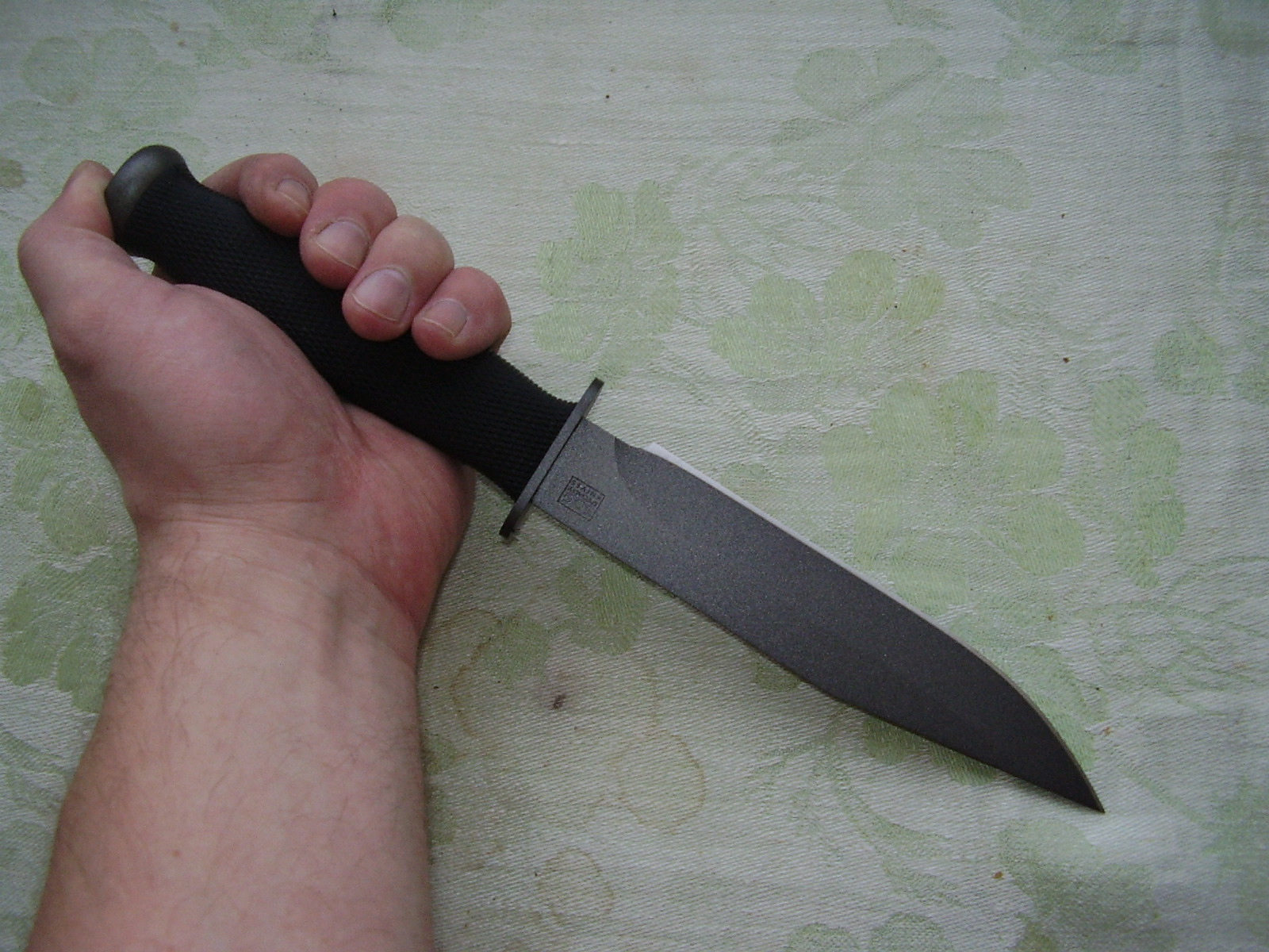Solid butt (field hammer use) Front grip Reverse hammer grip Government Agent & kydex sheath