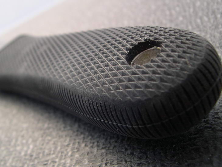 Grind lines of Mini-Tsunami Soft Kraton rubber handle Pictured with later kydex sheath