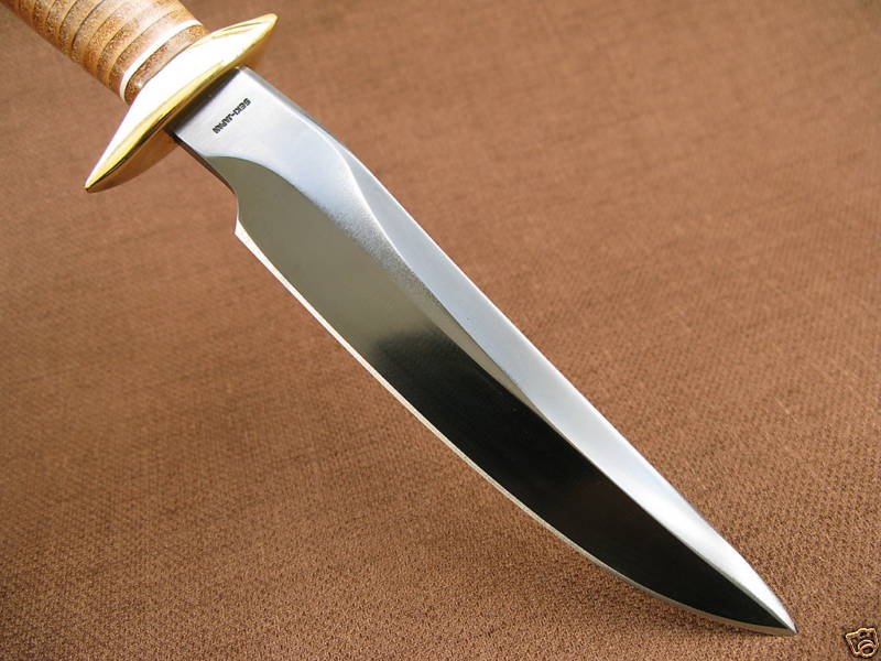 The SOG Recon Bowie, in the view of most SOG collectors, is the most interestingly-shaped and sexiest knife that SOG ever produced. One cannot escape from the beauty of it's gun-blued polished blade coupled with its leather washer handles, gleaming brass guard and butt. It is the most elegant knife of all the Seki Japan SOGs. The "Vietnam-era Recon Knife" shape is an especially attractive and collectible one, and some companies have sold knives based on that design, for example Randall and SOG. See the Randall Recon Knife here: http://www.militaryfightingknives.com/collection.html#Randall