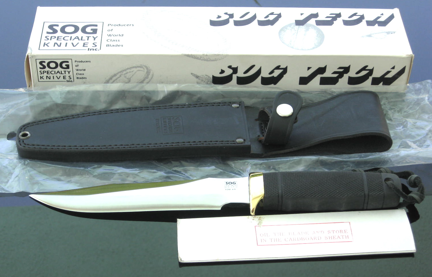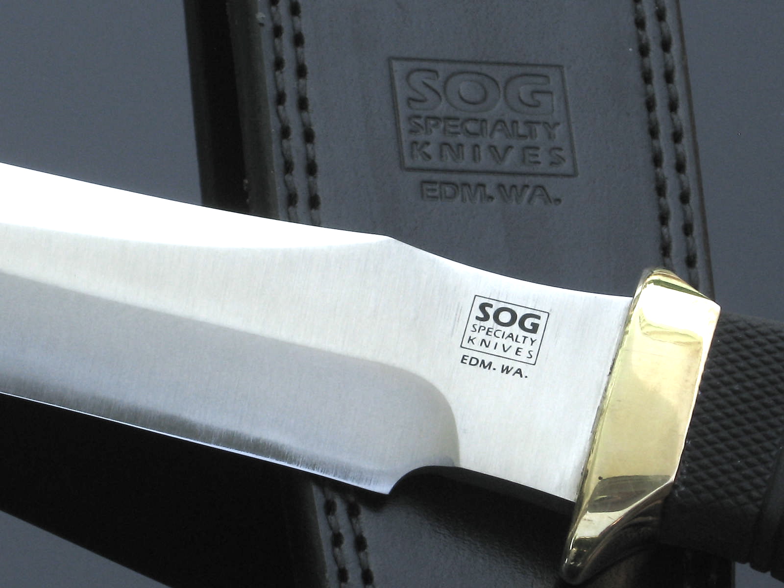 Earlier produced Tech II's have the words "EDM.WA" engraved below the SOG logo on the knife. The oldest version have the words "S.M.CA" marked on the blade, and is one of the oldest SOGs that were produced. The last version to be produced did not have any wordings engraved below the 'square SOG logo'. Leather sheaths with the earlier versions proceded the nylon and condura sheaths for the later produced knives. The Tech II is said to be the foundation for the 'Seal 2000 Knife', which retains certain features and designs of the Tech II.