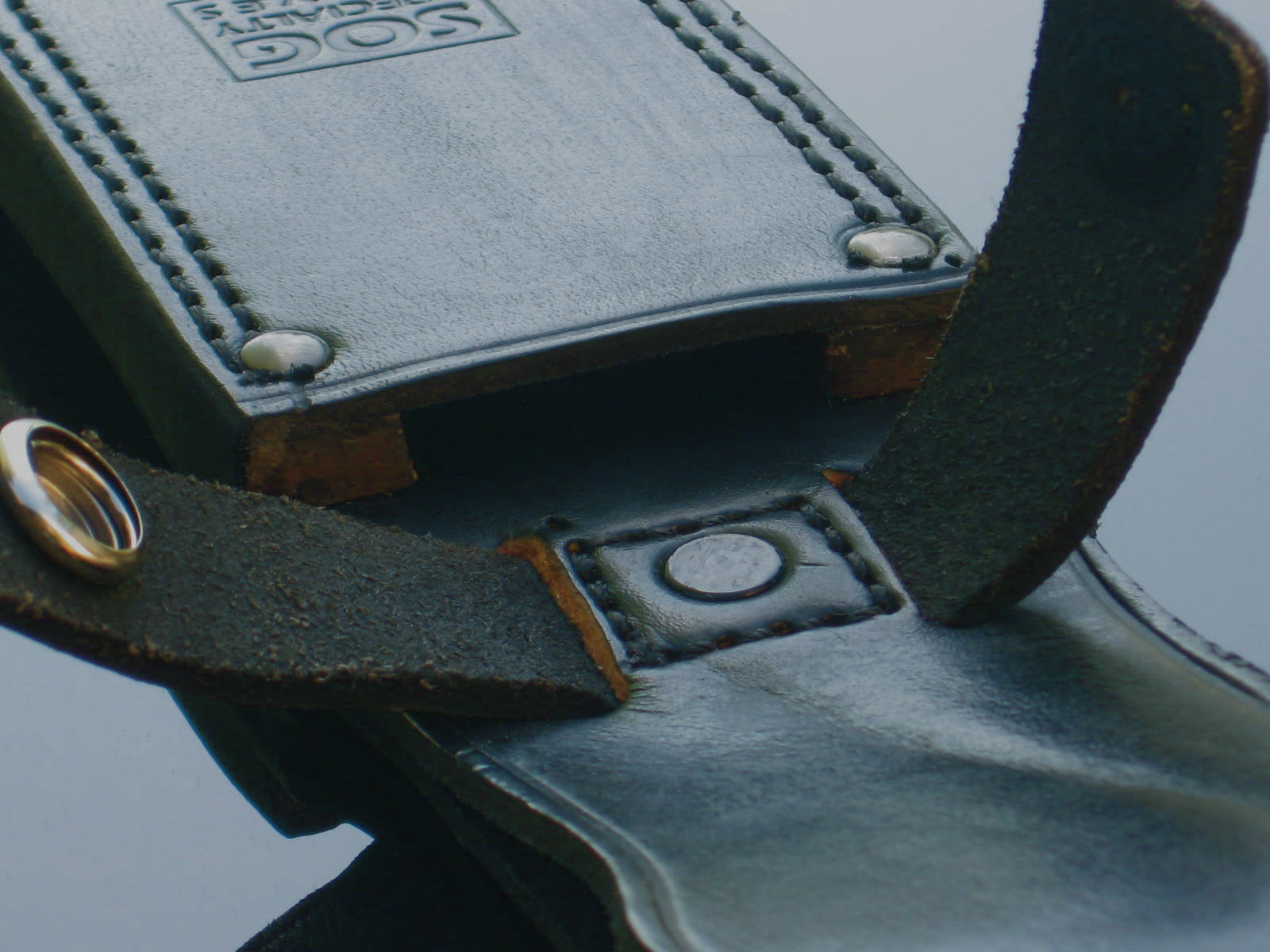 Beefy leather sheath Leather retaining strap Tech II w/ old logo Newer Tech II w/o "EDM. WA"